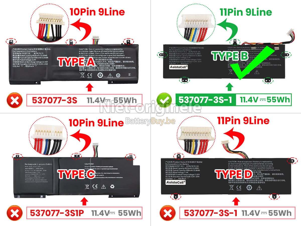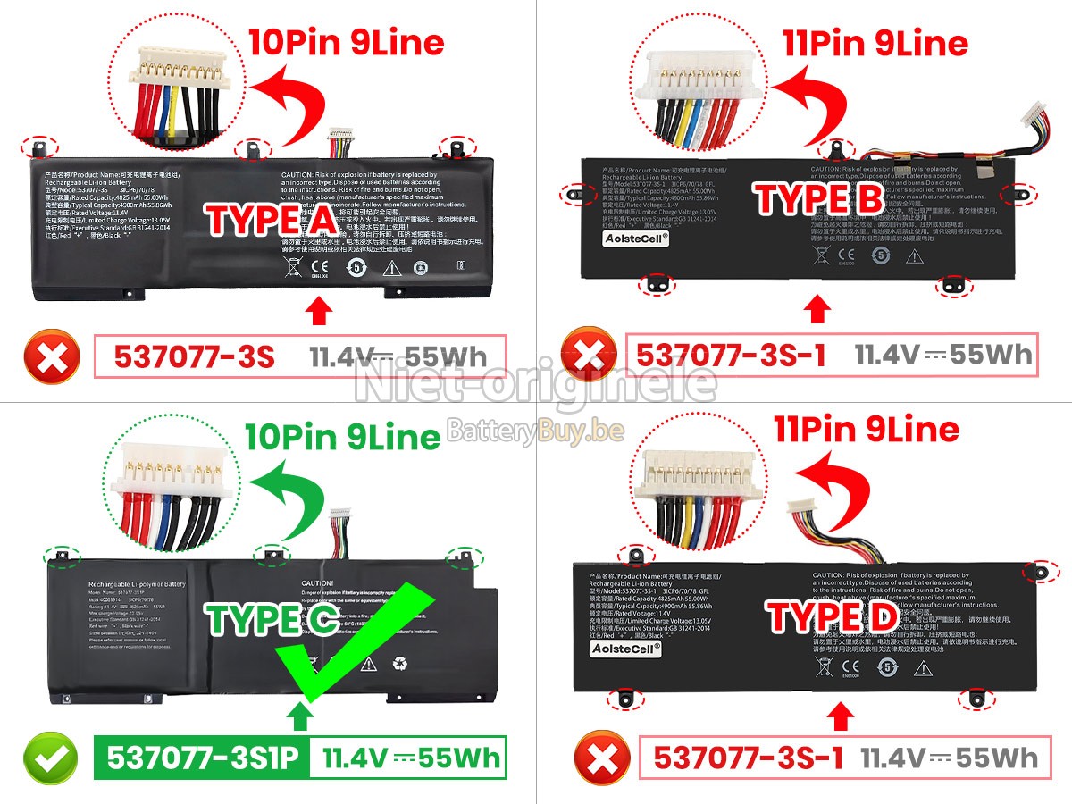 4 Cellen 55Wh IPASON 537077-3S1P(3ICP6/70/78) Accu Vervangen