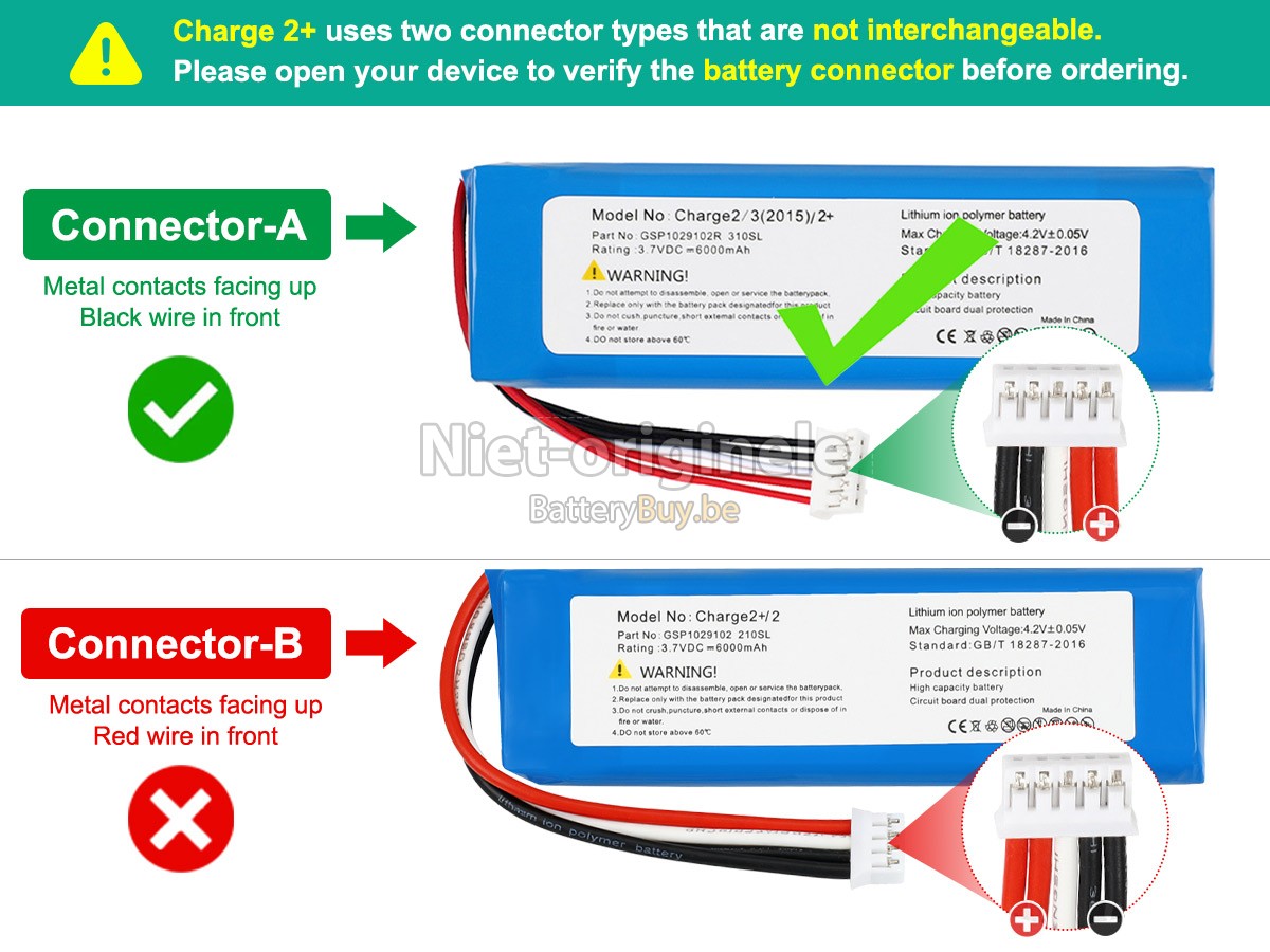 De lijst van compatibiliteits van JBL CHARGE 2+ batterij wordt vernieuwing blijven, maar niet opgave van al modellen worden gedaan. Als u niet zeker is van of deze JBL CHARGE 2+ accu geschikt is voor uw apparaat, neemt u contact met ons op en wij helpen u altijd graag.