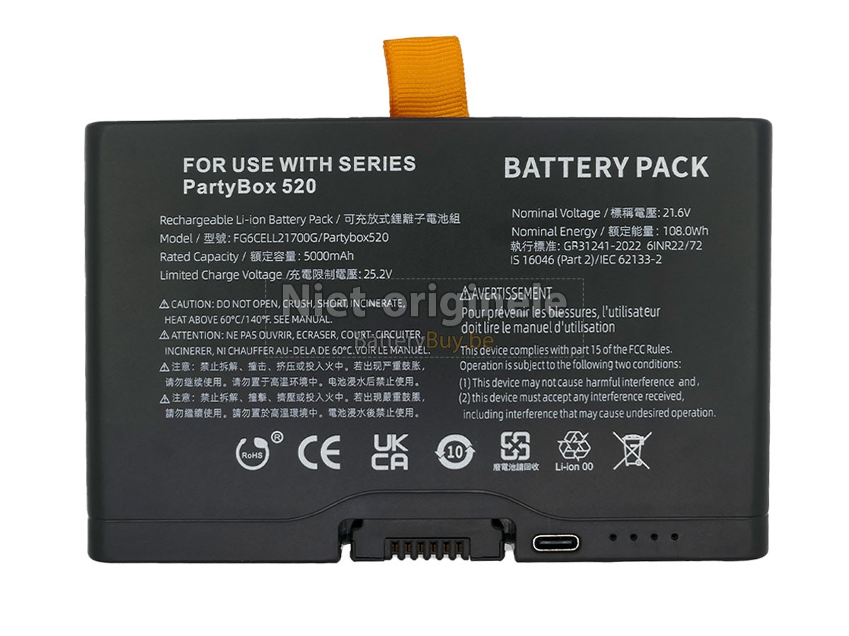 Lange Levensduur JBL PARTYBOX 520-TYPEC Accu Kopen