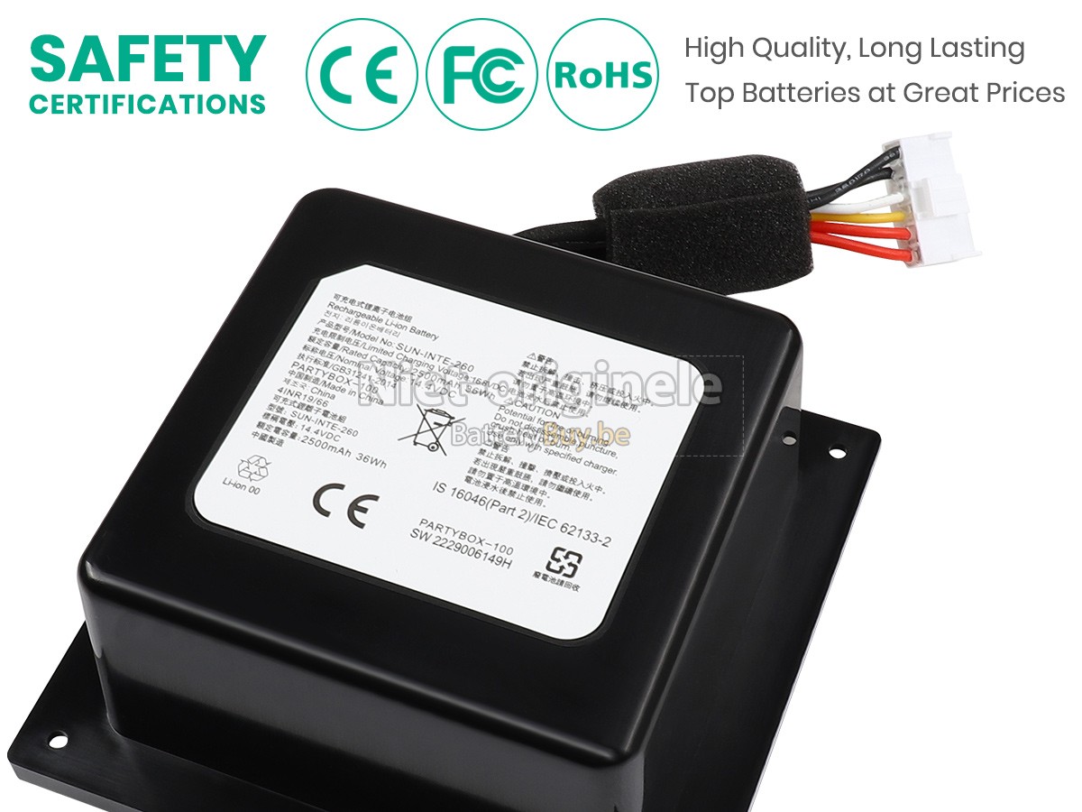 Alle batterijen die we aan de JBL SUN-INTE-260 leverde hebben internationaal certificering genoemd (CE, UL, ROHS, ISO, 9001 / 9002).