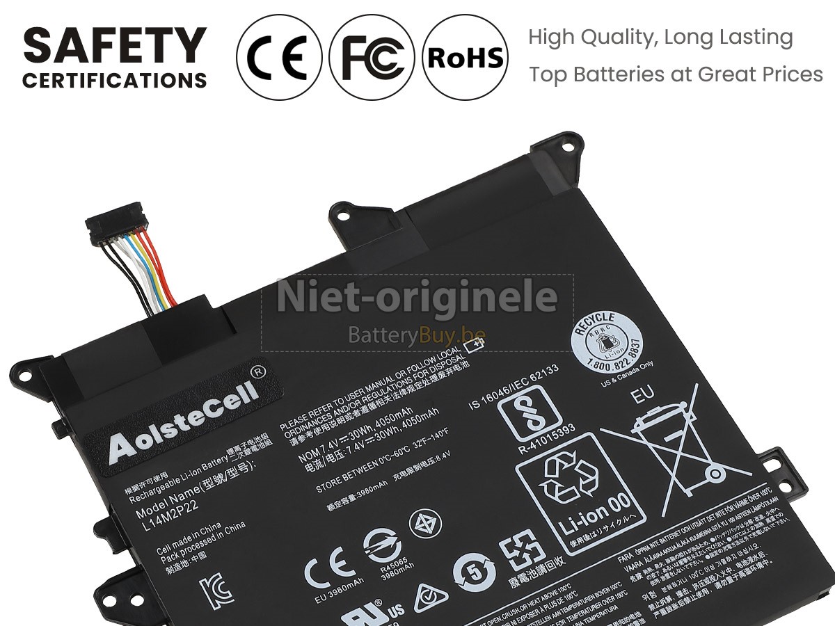 Alle batterijen die we aan de Lenovo FLEX 3-1120-80LX leverde hebben internationaal certificering genoemd (CE, UL, ROHS, ISO, 9001 / 9002).