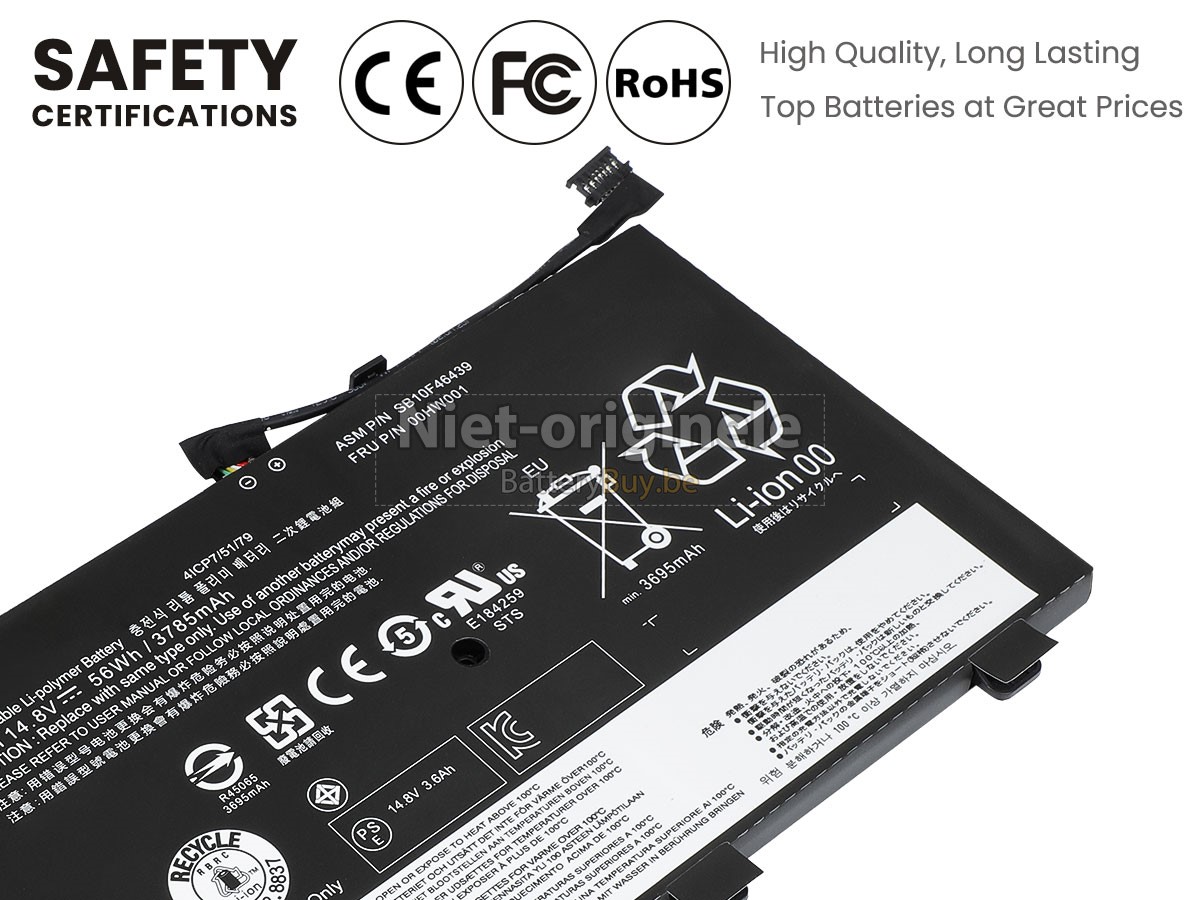 Alle batterijen die we aan de Lenovo SB10F46438 leverde hebben internationaal certificering genoemd (CE, UL, ROHS, ISO, 9001 / 9002).