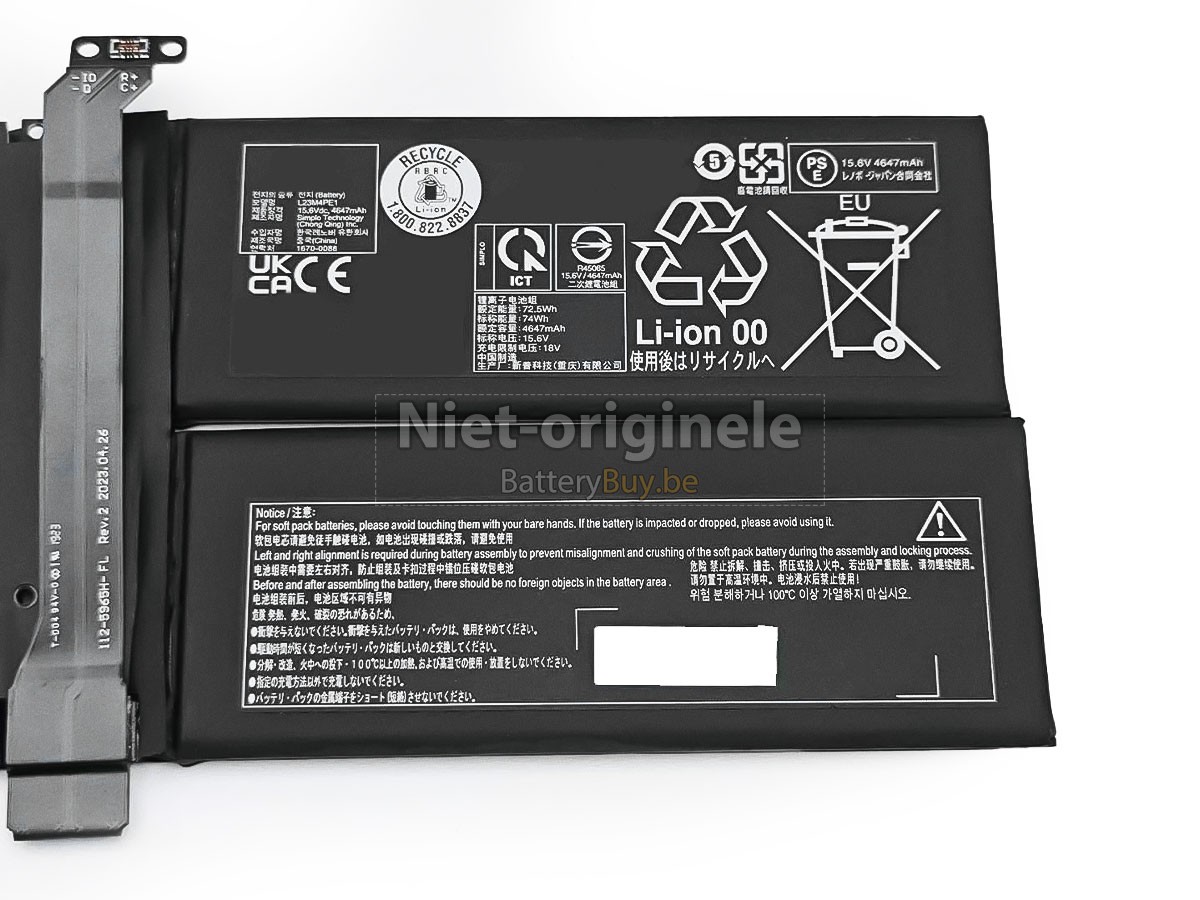 Alle batterijen die we aan de Lenovo THINKBOOK 13X G4 IMH-21KR000MSC leverde hebben internationaal certificering genoemd (CE, UL, ROHS, ISO, 9001 / 9002).
