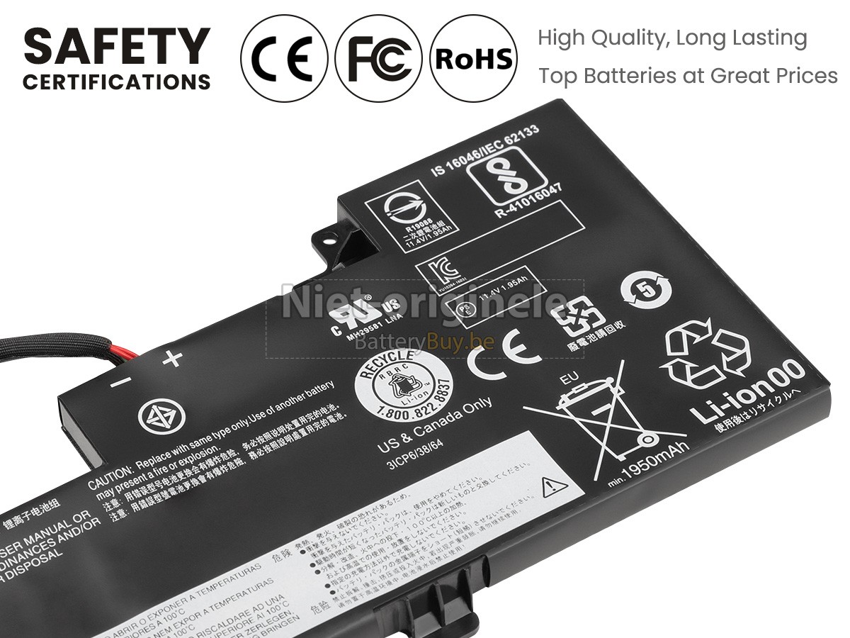 Al onze accu's zijn gloednieuw. We verkopen nooit accu dat oud, tweedehands of gerenoveerd is. We gebruiken allen de beste accucellen en componenten om uw zekerheid en ervaring te beschermen.Is er iets anders tussen jouw Lenovo ThinkPad T470 20HD0000CX accu en die van OEM?