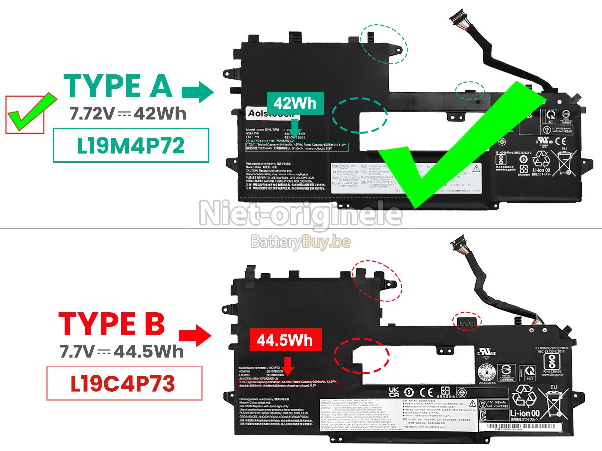 Al onze accu's zijn gloednieuw. We verkopen nooit accu dat oud, tweedehands of gerenoveerd is. We gebruiken allen de beste accucellen en componenten om uw zekerheid en ervaring te beschermen.Is er iets anders tussen jouw Lenovo ThinkPad X1 TITANIUM GEN 1-20QA001WML accu en die van OEM?