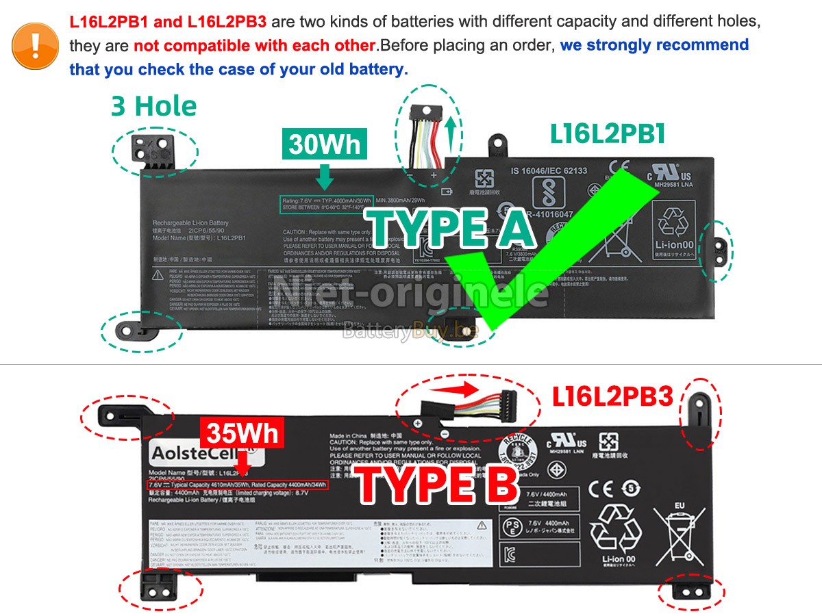Laat u niet misleiden door valse advertenties! Al onze batterijen worden strikt gecontroleerd. Zij overeenstemmen of even overtreffen met de prestaties van originele batterijen.