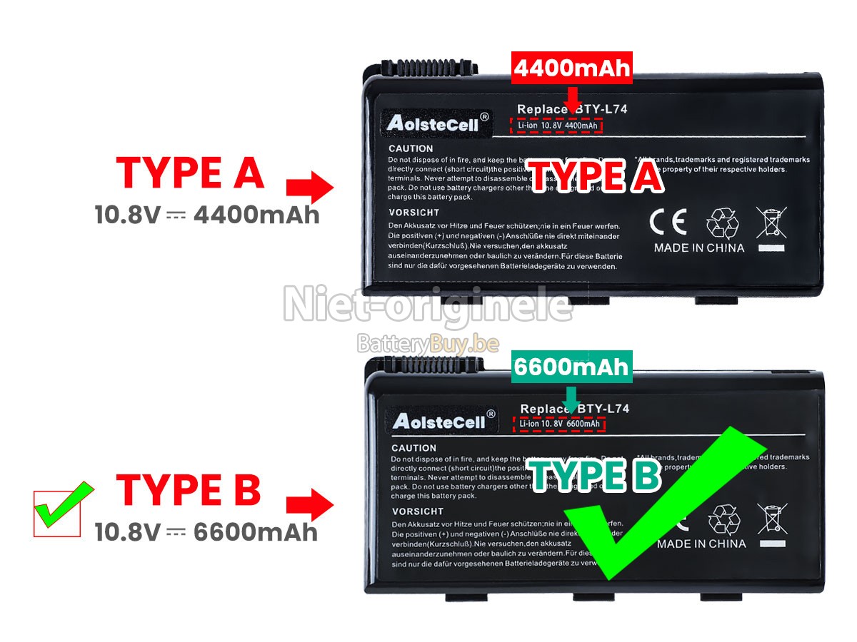 Laat u niet misleiden door valse advertenties! Al onze batterijen worden strikt gecontroleerd. Zij overeenstemmen of even overtreffen met de prestaties van originele batterijen.