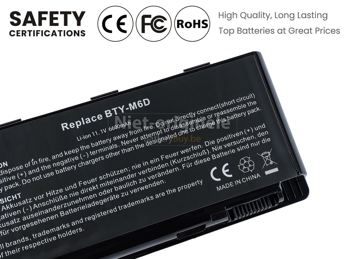 Alle batterijen die we aan de MSI GX660-266NE leverde hebben internationaal certificering genoemd (CE, UL, ROHS, ISO, 9001 / 9002).