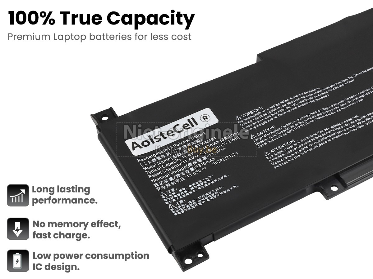 Niets, behalve dat onze MSI MODERN 15 A11ML batterij geen merk of label heeft. Consumenten achten de oorspronkelijke laptop accu van Apple, Dell, Toshiba en Hewlett-Packard vaak als de voordelen van een merknaam. Eigenlijk gebruiken ze ook de componenten van een derde partij. We maken onze accu’s eveneens met dezelfde accucellen en printplaat, maar we vervaardigen onze eigen huls en de kosten van de waarde aan het merk verlagen. Daarom consumenten laptop accu van wereldniveau die dezelfde met originele versie is kunnen kopen tegen een veel lage prijs.Kan mijn MSI MODERN 15 A11ML laptop accu verschillende capaciteiten gebruiken?