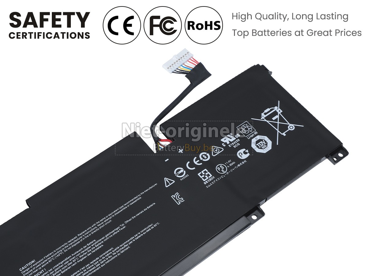 Alle batterijen die we aan de MSI MODERN 15 A11ML leverde hebben internationaal certificering genoemd (CE, UL, ROHS, ISO, 9001 / 9002).