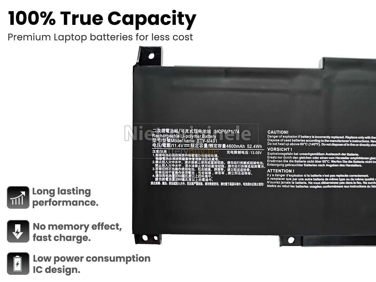 We bieden voor vervangende MSI STEALTH 15M A11UEK-062NE accu een twaalf maanden garantie aan. Kapot producties onder de garantie dat niet kunstmatig gebroken is kunnen gratis worden veranderd. We zullen de verzendkosten betalen.