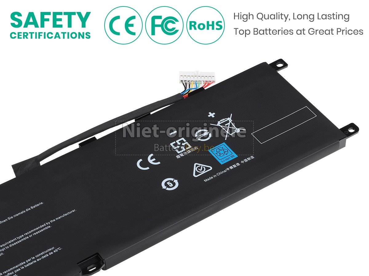 Alle batterijen die we aan de MSI WS66 10TMT leverde hebben internationaal certificering genoemd (CE, UL, ROHS, ISO, 9001 / 9002).