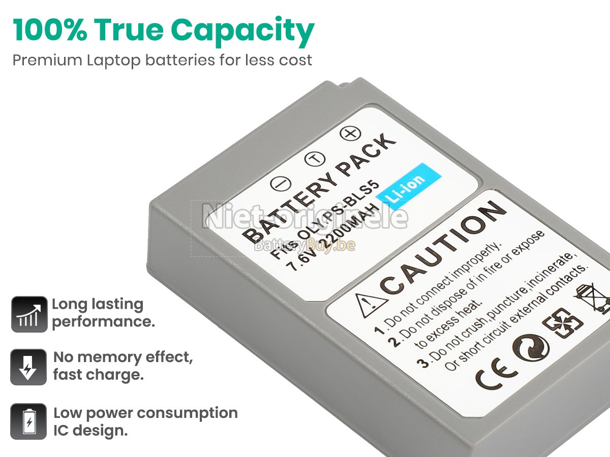 Waarom onze Olympus PS-BLS5 accu kunnen maken uw apparaat langer werkt worden? We willen de beste wederverkoper van accu's in België zijn, dus We bieden onze klanten alleen de accu's van beste kwaliteit aan. Olympus PS-BLS5 batterij maken gebruik van de superieur lithium-ion-accucellen van topbedrijven zoals Panasonic, Sony, Samsung en Texas Instruments. Dus de prestaties overeenstemmen of even overtreffen met die van originele accu's. Maar de prijs is zeer lager dan die van de originele accu's, want we vervaardigen onze eigen huls en de kosten van de waarde aan het merk verminderen, wat de extra kosten van onze klanten verlaagt.