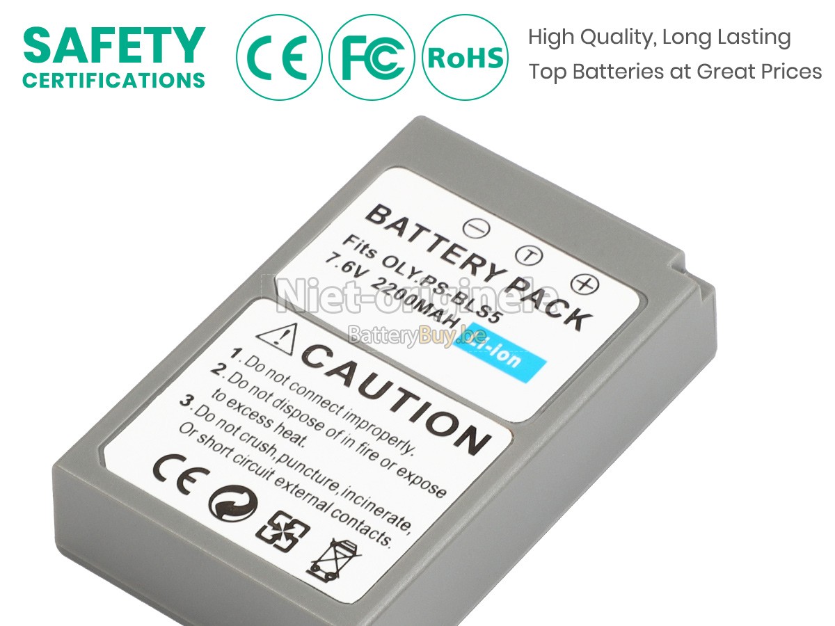 Alle batterijen die we aan de Olympus PS-BLS5 leverde hebben internationaal certificering genoemd (CE, UL, ROHS, ISO, 9001 / 9002).