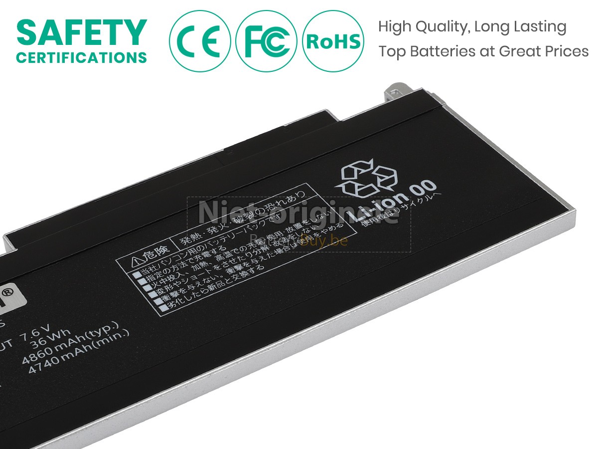 Alle batterijen die we aan de Panasonic CF-VZSUOEJS leverde hebben internationaal certificering genoemd (CE, UL, ROHS, ISO, 9001 / 9002).