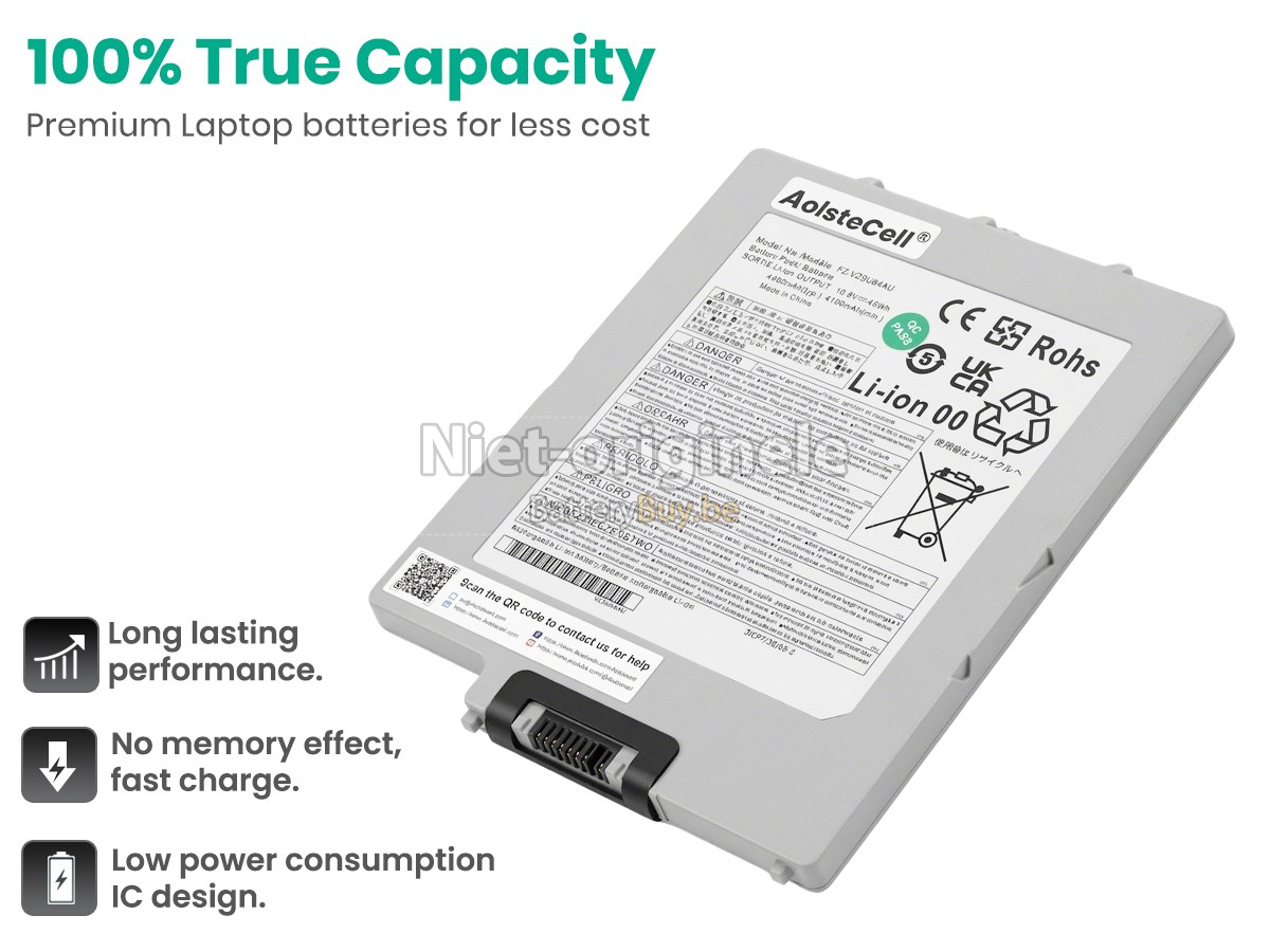 Al onze accu's zijn gloednieuw. We verkopen nooit accu dat oud, tweedehands of gerenoveerd is. We gebruiken allen de beste accucellen en componenten om uw zekerheid en ervaring te beschermen.Is er iets anders tussen jouw Panasonic FZ-VZSU84A2U accu en die van OEM?