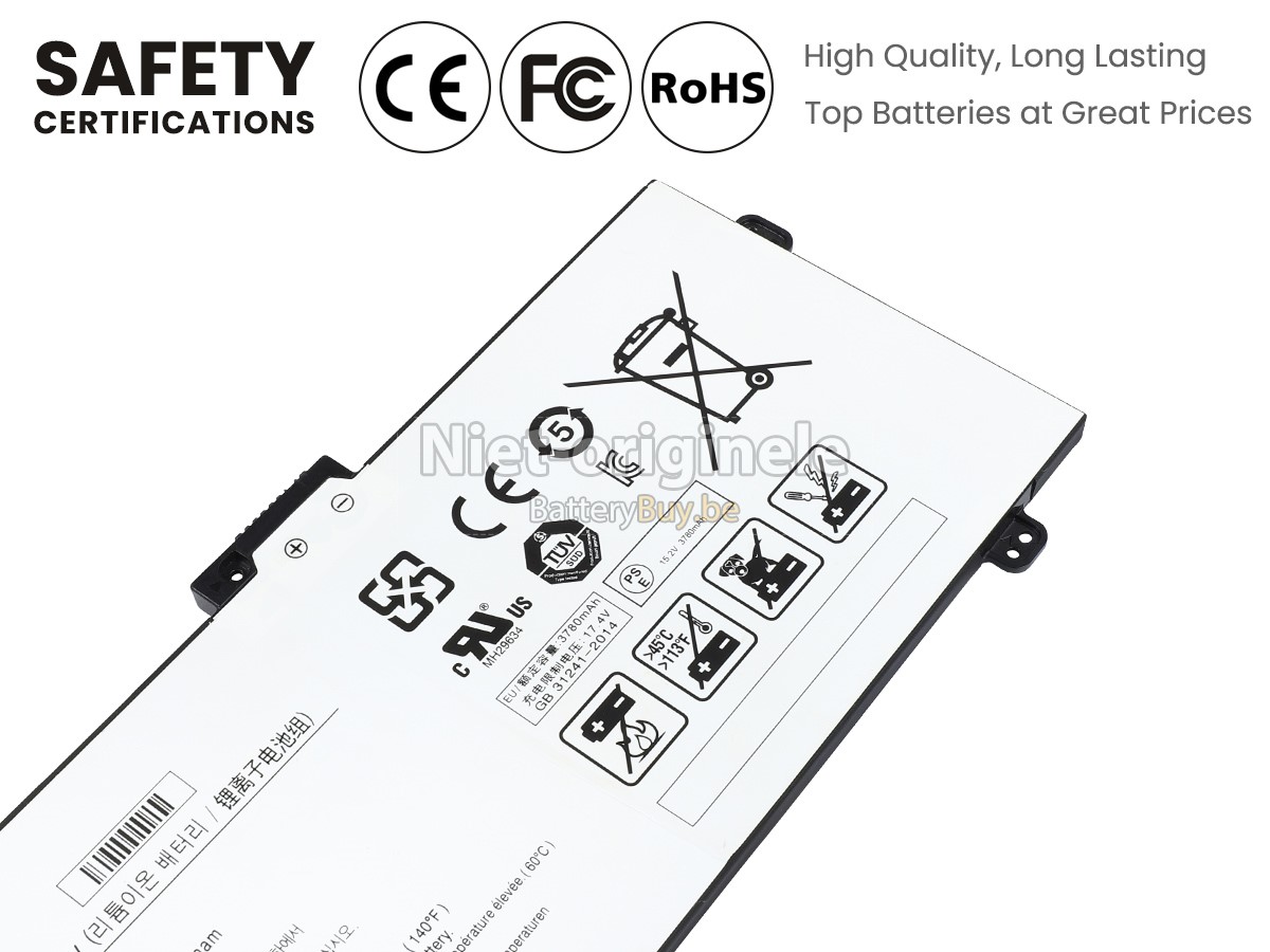 Alle batterijen die we aan de Samsung AA-PBUN4NP leverde hebben internationaal certificering genoemd (CE, UL, ROHS, ISO, 9001 / 9002).