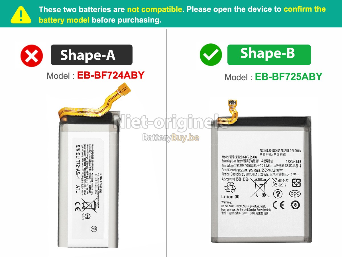 De lijst van compatibiliteits van Samsung GALAXY Z FLIP4 SM-F721B batterij wordt vernieuwing
