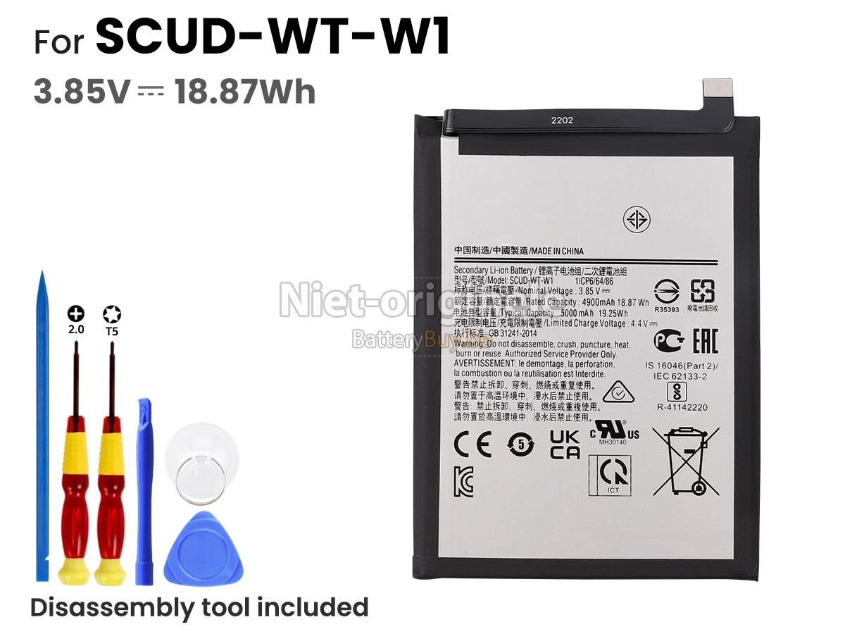 Alle batterijen die we aan de Samsung SCUD-WT-W1 leverde hebben internationaal certificering genoemd (CE, UL, ROHS, ISO, 9001 / 9002).