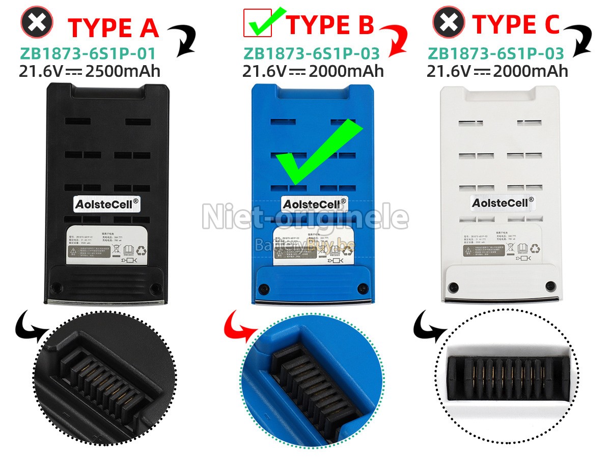 De lijst van compatibiliteits van Tineco ZB1873-6S1P-03 batterij wordt vernieuwing blijven, maar niet opgave van al modellen worden gedaan. Als u niet zeker is van of deze Tineco ZB1873-6S1P-03 accu geschikt is voor uw apparaat, neemt u contact met ons op en wij helpen u altijd graag.
