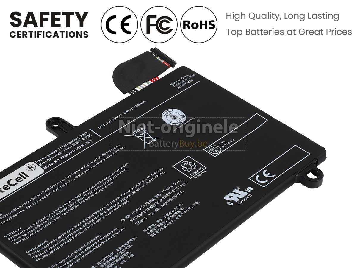 Alle batterijen die we aan de Toshiba Dynabook GZ83 leverde hebben internationaal certificering genoemd (CE, UL, ROHS, ISO, 9001 / 9002).