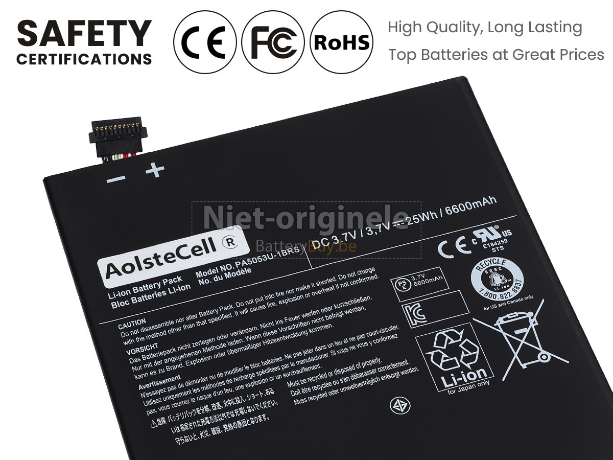 Alle batterijen die we aan de Toshiba EXCITE PURE AT10-A-103 leverde hebben internationaal certificering genoemd (CE, UL, ROHS, ISO, 9001 / 9002).